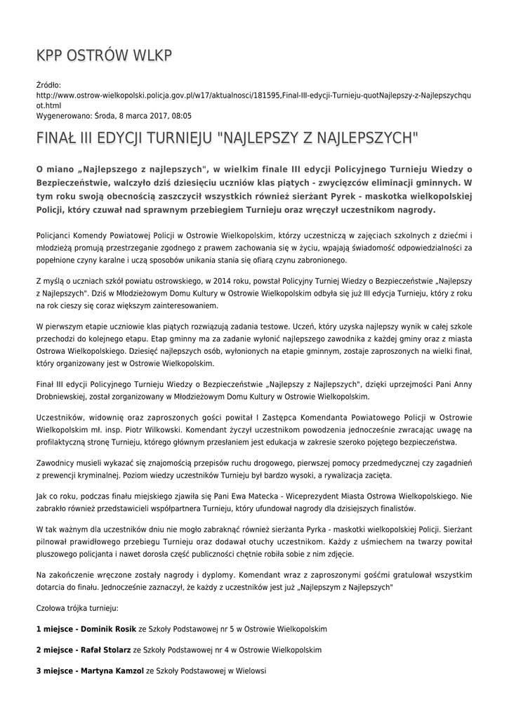 KPP OSTRÓW WLKP FINAŁ III EDYCJI TURNIEJU "NAJLEPSZY Z