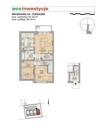 0 1 5m MIESZKANIE A2 - PODDASZE pow. użytkowa: 61,32 m² pow. podłogi: 66,15 m² balkon 3,72 m² N h=140cm TV h=220cm A2.2/6 kuchnia 7,18 m² (9,75 m²) A2.2/7 pokój dzienny 16,99 m² zmyw. A2.2/5 łazienka 4,90 m² A2.2/4 sypialnia 7,95 m² (10,21 m²) A2.2/8 garderoba 2,65 m² A2.2/2 korytarz A2.2/1 3,42 m² kl. schodowa 2,38 m² TV piekar. h=190cm h=220cm A2.2/3 pokój 10,69 m² h=190cm h=140cm ŚM A2 D2 C2 B2 A2.1/1 wiatrołap 5,16 m²