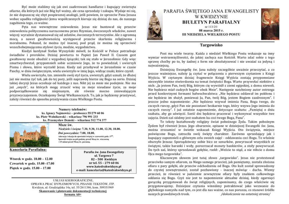 pobierz biuletyn - Parafia pw. św. Jana Ewangelisty