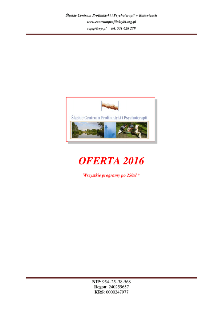 SCPiP oferta 2016 do pobrania tutaj - Śląskie Centrum Profilaktyki i