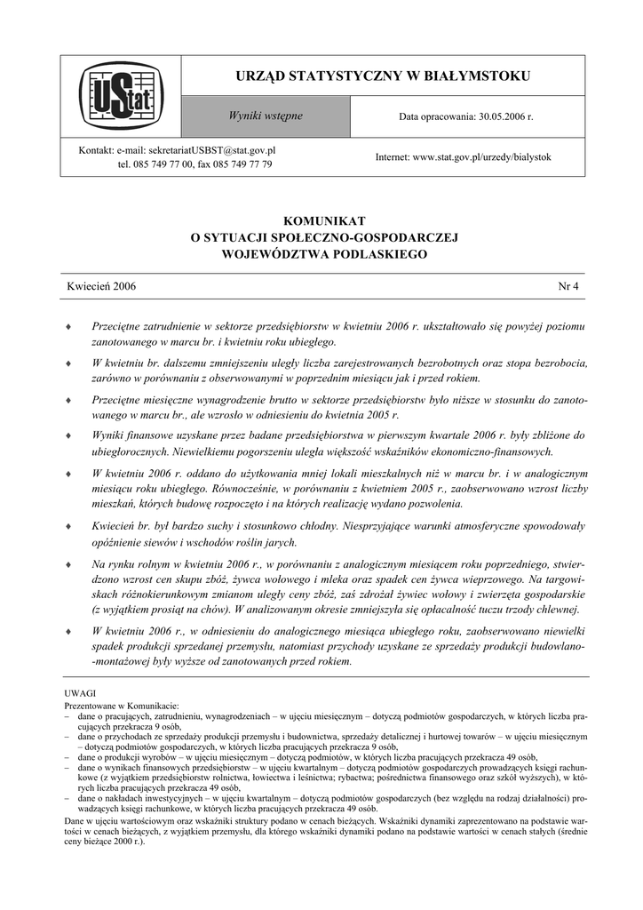kwiecień 2006 r. - Urząd Statystyczny w Białymstoku