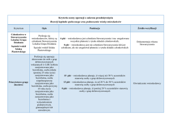 Kryteria oceny operacji z zakresu przedsięwzięcia Rozwój kapitału
