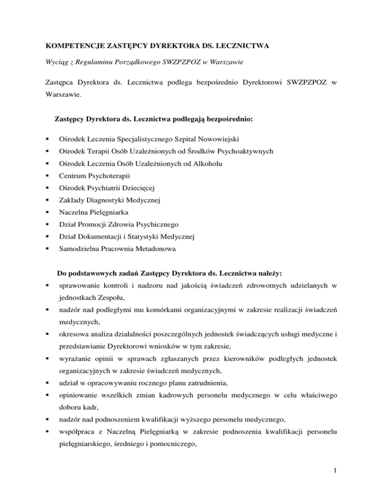1 KOMPETENCJE ZASTĘPCY DYREKTORA DS. LECZNICTWA