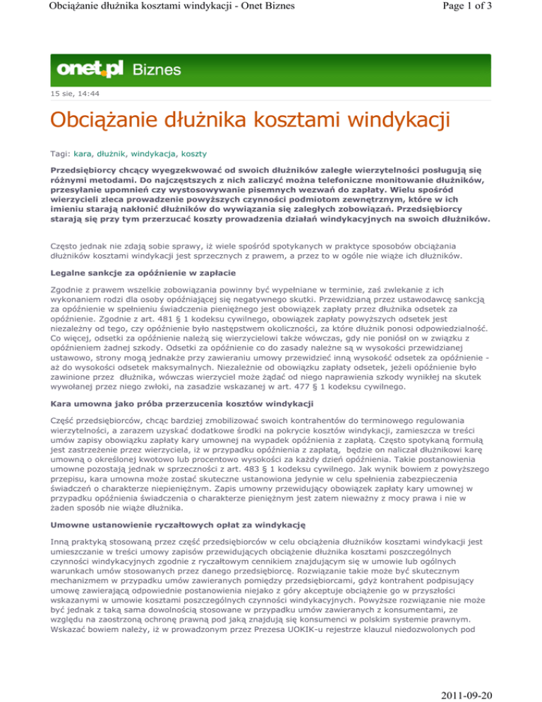 20-09-2011 Obciążanie dłużnika kosztami windykacji