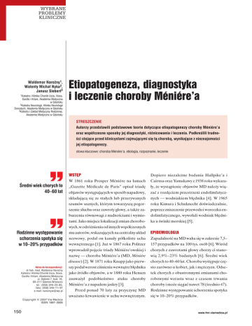 Etiopatogeneza, diagnostyka i leczenie choroby Méniére`a