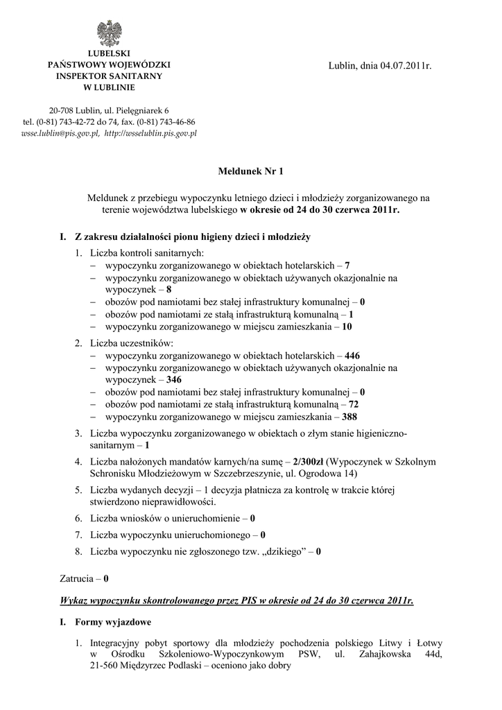 Lublin, dnia 04.07.2011r. Meldunek Nr 1 Meldunek z przebiegu