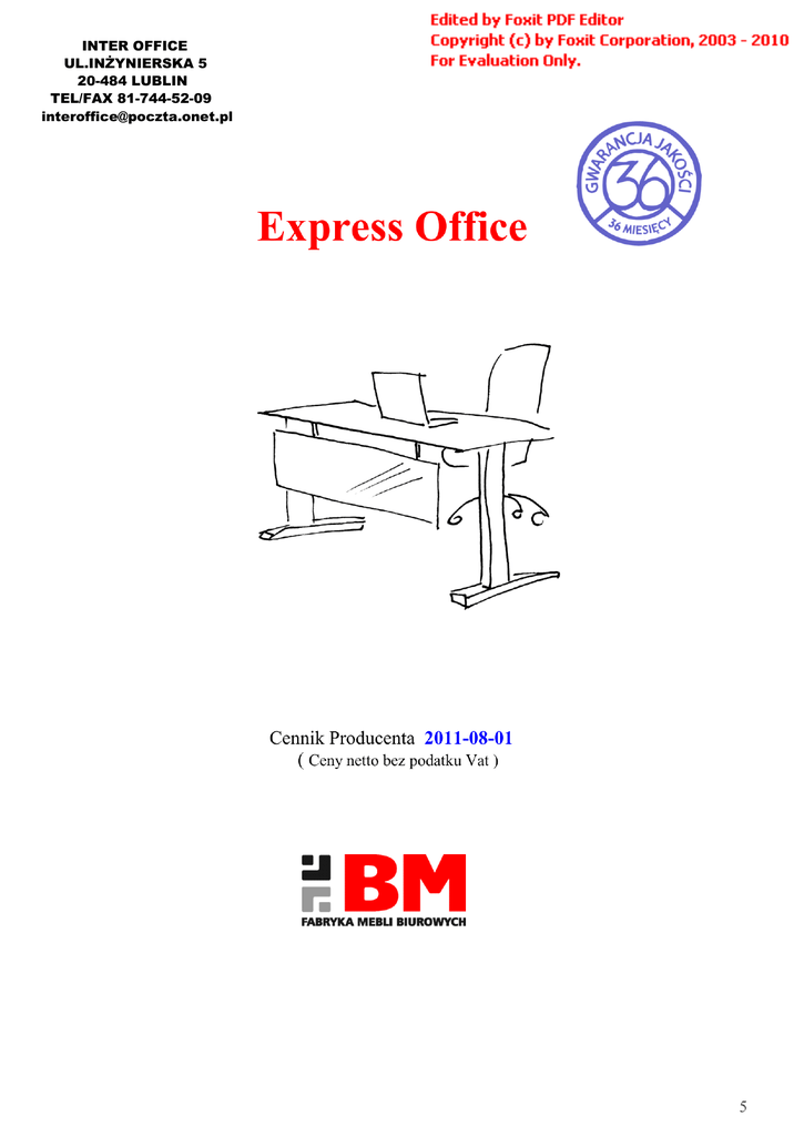 Cennik mebli biurowych Exprees Office Fabryki BiM