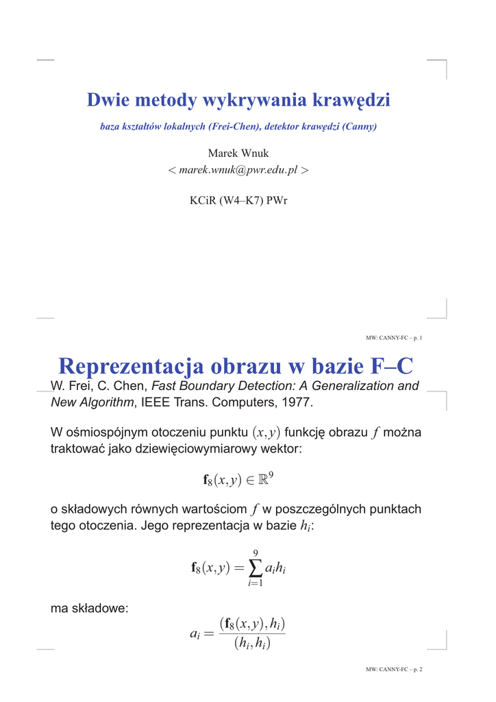 Wybrane metody detekcji krawędzi (Canny, Frei