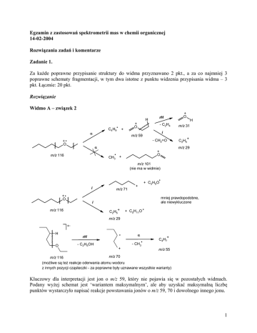 Egzamin z zastosowań spektrometrii mas w chemii organicznej