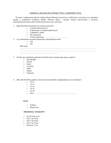 ANKIETA MUZEUM ŁOWIECTWA I JEŹDZIECTWA