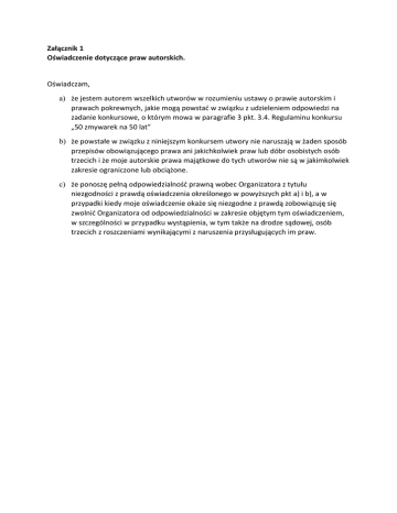 Załącznik 1 Oświadczenie dotyczące praw autorskich. Oświadczam