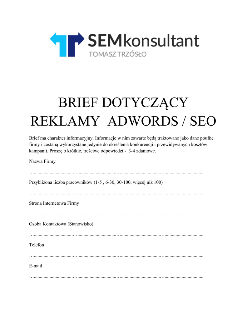 BRIEF DOTYCZĄCY REKLAMY ADWORDS / SEO