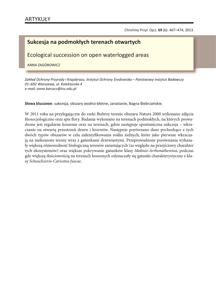 ARTYKUŁY Sukcesja na podmokłych terenach otwartych