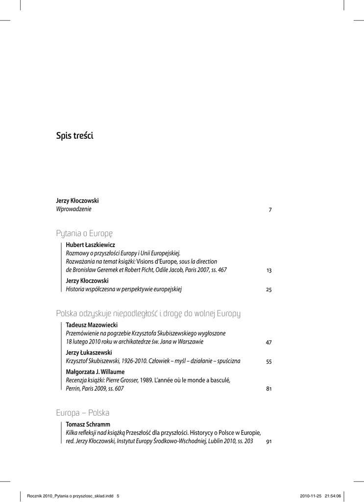 Spis treści / Contents - Instytut Europy Środkowo-Wschodniej