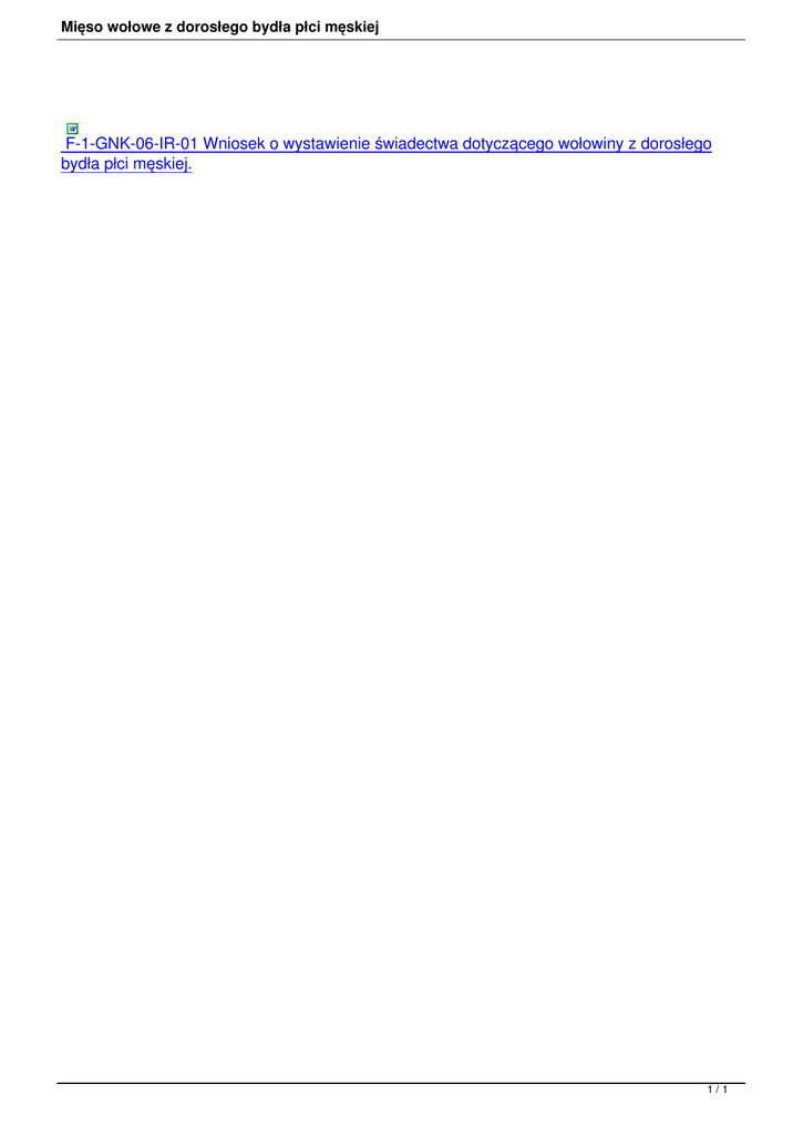 Mięso wołowe z dorosłego bydła płci męskiej F-1-GNK-06-IR-01 Wniosek o wystawienie świadectwa dotyczącego wołowiny z dorosłego bydła płci męskiej. 1/1