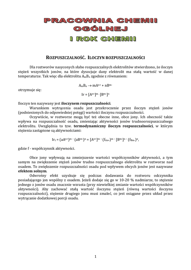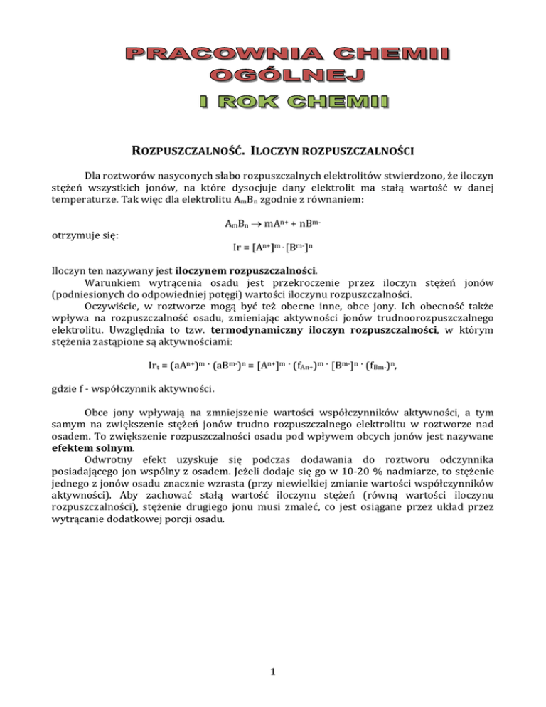 5. Rozpuszczalność. Iloczyn rozpuszczalności.
