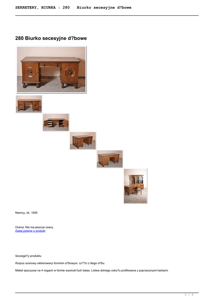 SEKRETERY, BIURKA : 280 Biurko secesyjne dębowe
