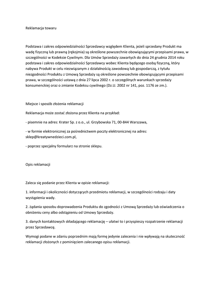 Reklamacja towaru - Kreatywne Dzieci