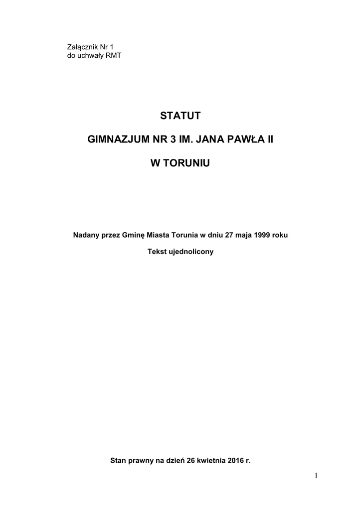 STATUT GIMNAZJUM NR 3 IM. JANA PAWŁA II W TORUNIU