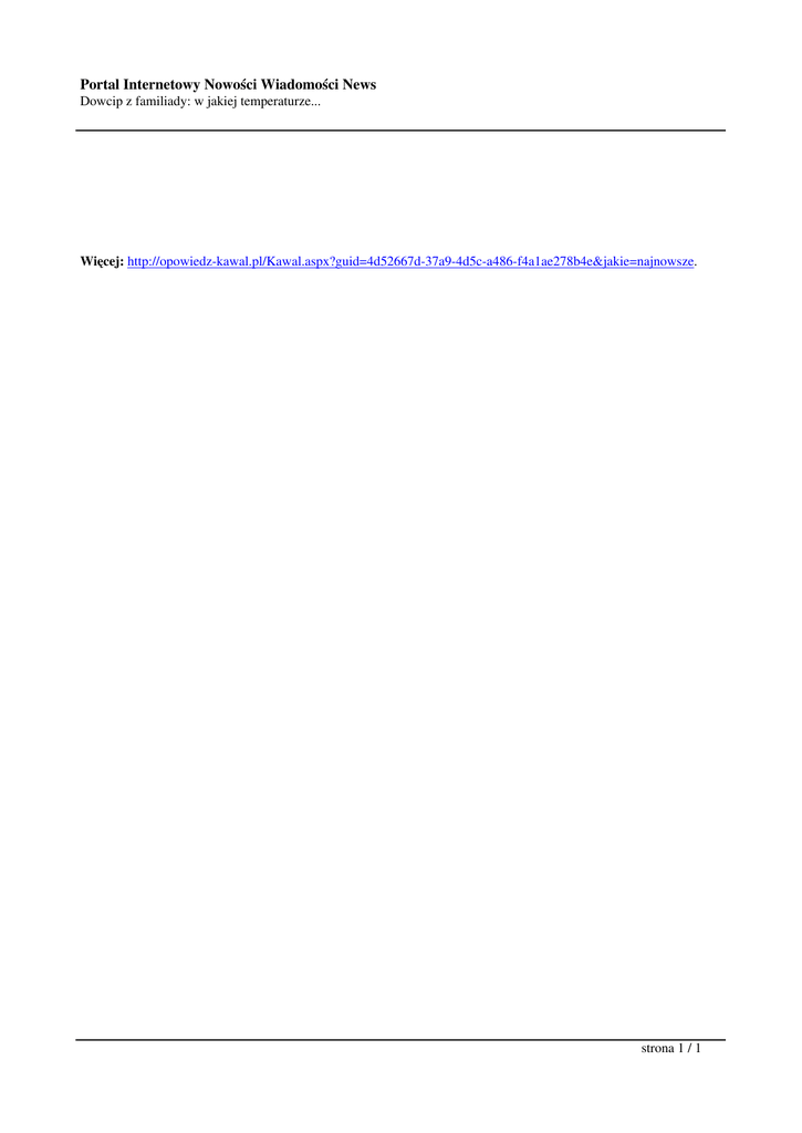 Portal Internetowy Nowości Wiadomości News Dowcip z familiady: w jakiej temperaturze... Więcej: http://opowiedz-kawal.pl/Kawal.aspx?guid=4d52667d-37a9-4d5c-a486-f4a1ae278b4e&jakie=najnowsze. strona 1 / 1