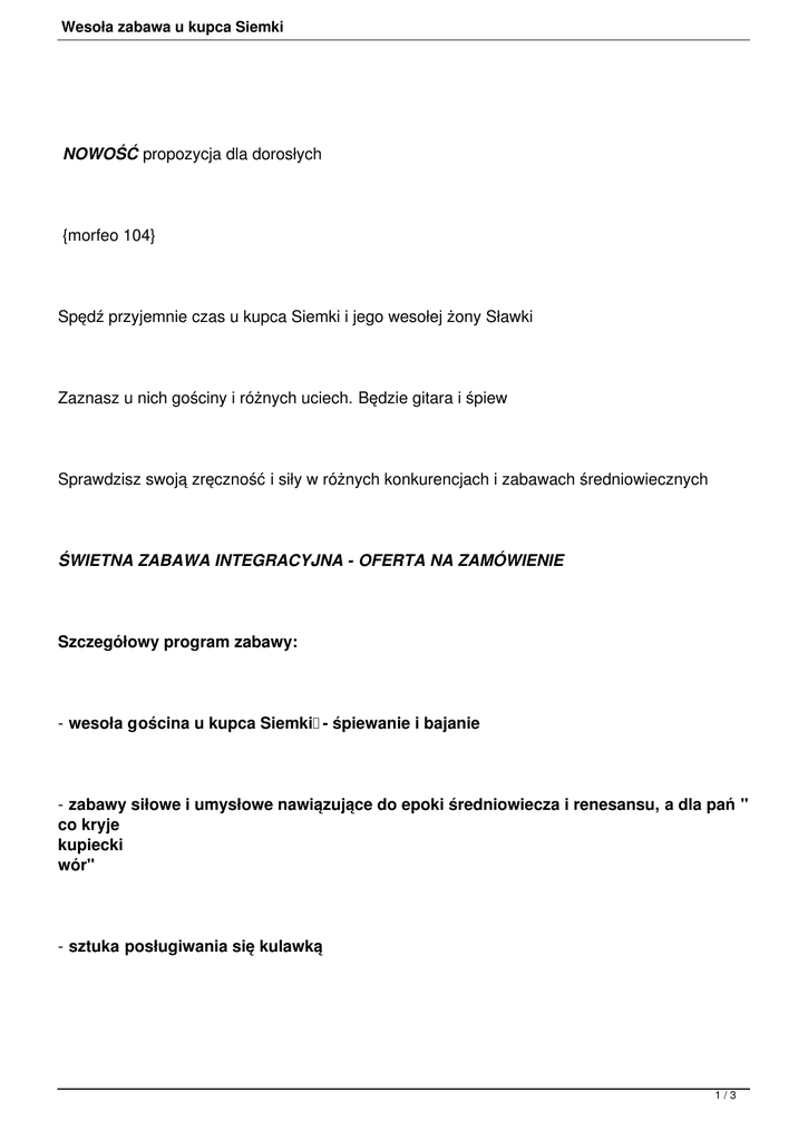 ŚWIETNA ZABAWA INTEGRACYJNA - OFERTA NA ZAMÓWIENIE