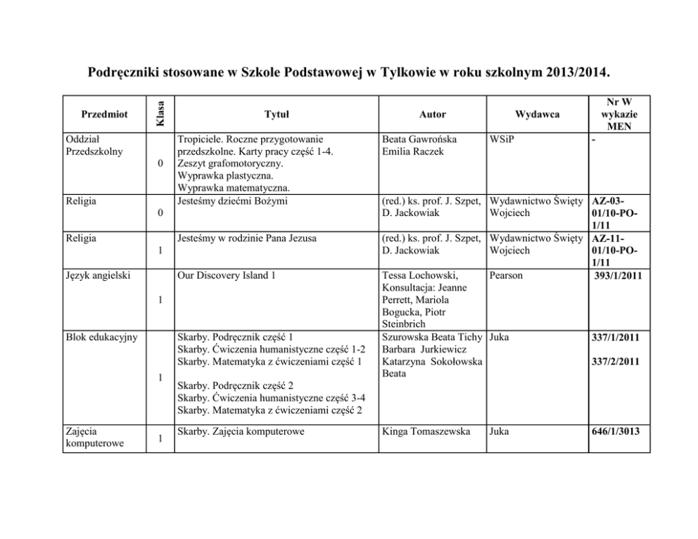 Podręczniki 2013/14.docx - Szkoła Podstawowa w Tylkowie