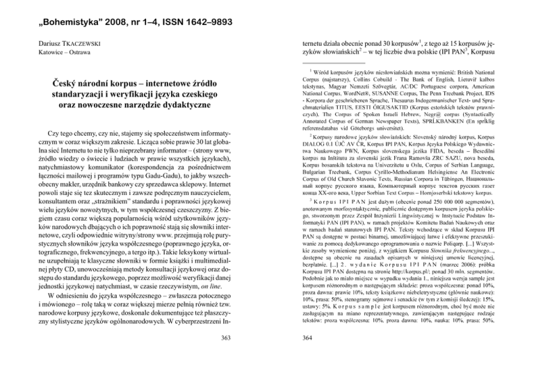 narodowe korpusy jêzykowe, doskonale dokumentuj¹ce te¿ p³aszczyzny stylistyczne jêzyków ogólnonarodowych. W cyberprzestrzeni In363
