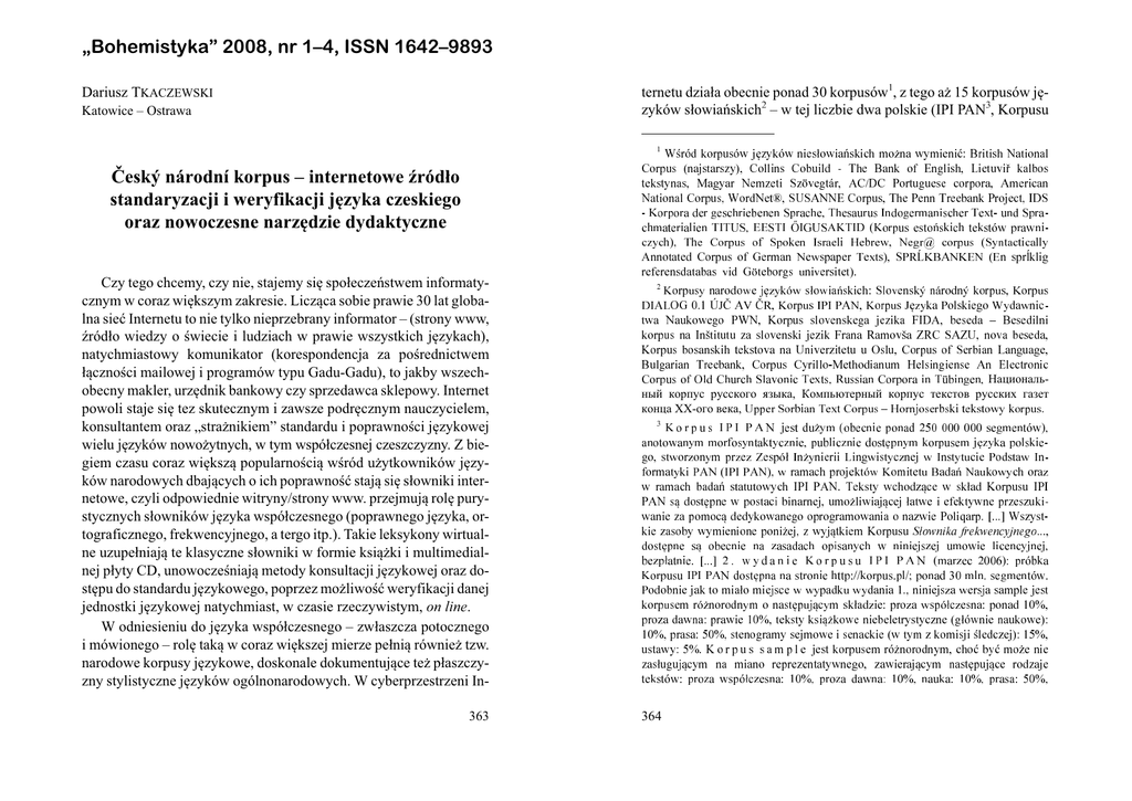 „Bohemistyka” 2008, nr 1–4, ISSN 1642–9893