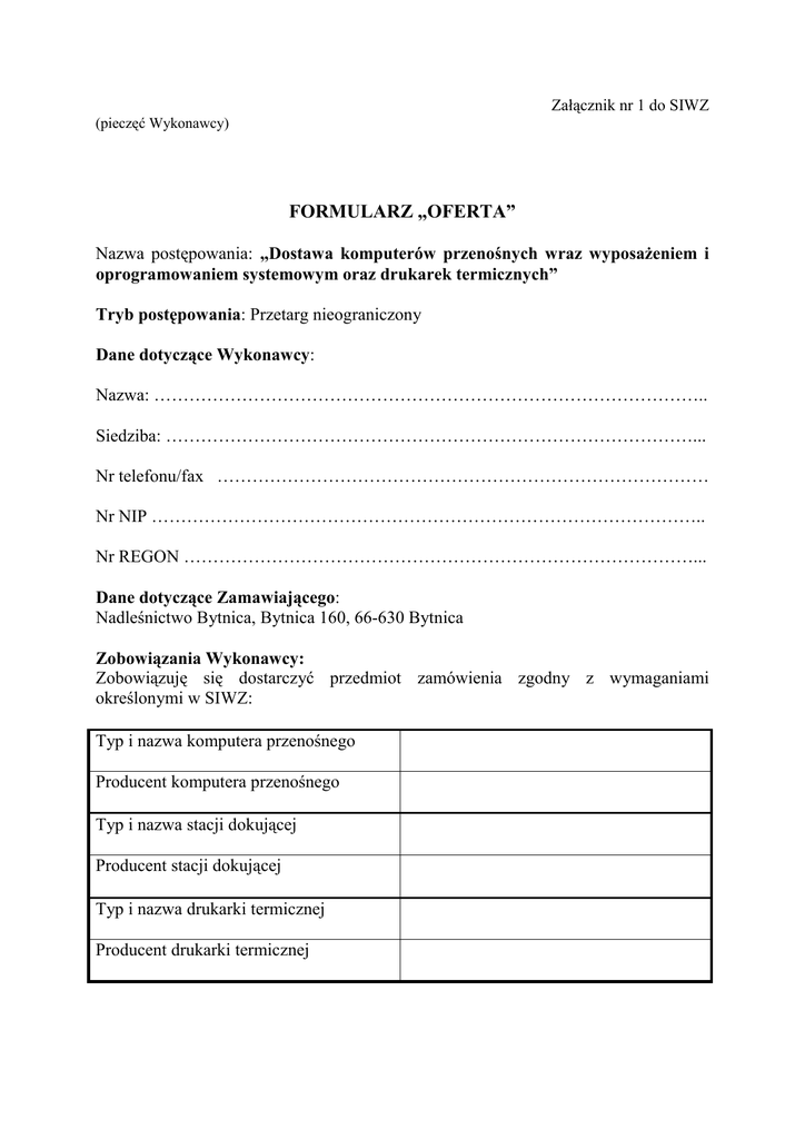 formularz „oferta” - Nadleśnictwo Bytnica