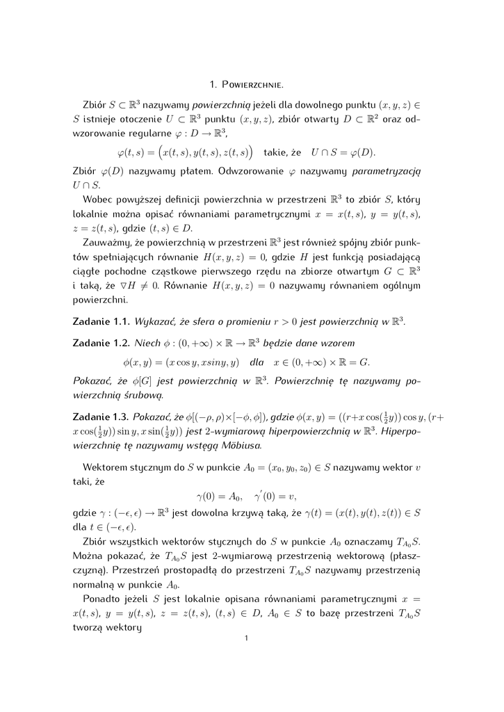 S istnieje otoczenie U ⊂ R3 punktu (x, y, z), zbiór otwarty D ⊂ R2 oraz odwzorowanie regularne ϕ : D → R3 ,
