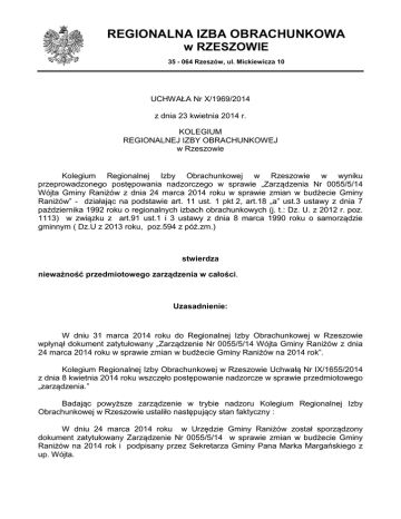 Uchwała nr X/1969/2014 - Regionalna Izba Obrachunkowa w