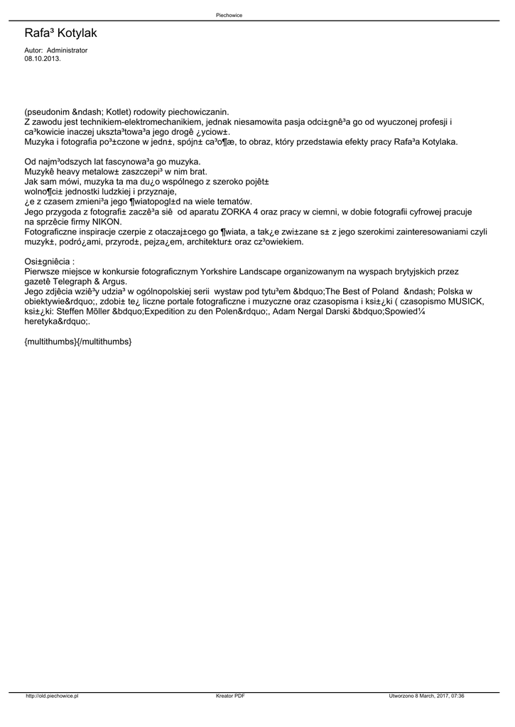 (pseudonim – Kotlet) rodowity piechowiczanin.