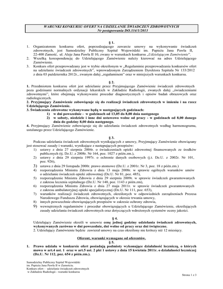 WARUNKI KONKURSU OFERT NA UDZIELANIE ŚWIADCZEŃ ZDROWOTNYCH