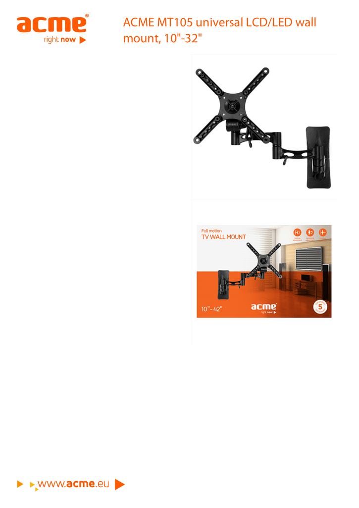 ACME MT105 universal LCD/LED wall mount, 10"-32"