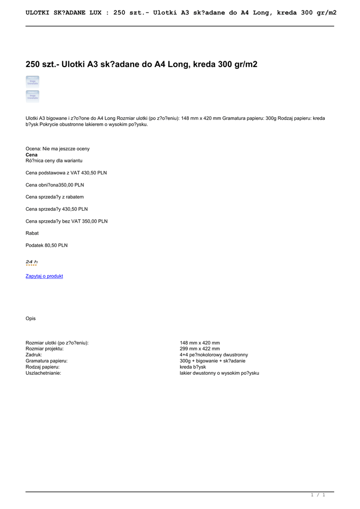 250 szt.- Ulotki A3 składane do A4 Long, kreda 300