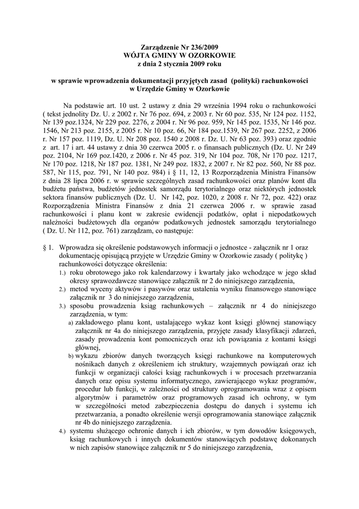 Zarządzenie Nr 236/2009 Wójta Gminy w Ozorkowie z dnia 2