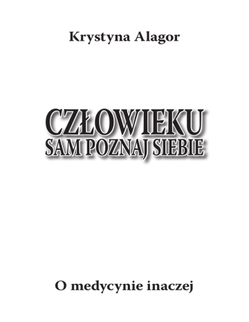 Krystyna Alagor CZŁOWIEKU SAM POZNAJ SIEBIE O medycynie inaczej © Copyright by Wydawnictwo Autorskie ALAGOR – Krystyna Krawczyk 2011 Grafika: Marek Maj http:// www.marcusvonmay.com Wydawnictwo: Wydawnictwo: ALAGOR W.A. ul. Sportowa 1/4 26-600 Radom tel./fax: 48 360 65 07 e-mail: [email protected] www.alagorr.republika.pl ISBN 978-83-89814-14-2 WPROWADZENIE „Człowieku, sam poznaj siebie” (Sokrates) Grecki filozof, moralista i mędrzec (żyjący w latach 469-399 p.n.e.); szczególnym zainteresowaniem darzył człowieka, wskazywał kierunek dobra, a za odmienną filozofię, został przez sąd ateński skazany na śmierć. Sokrates pozostawił dla ludzkości przesłanie, aktualne w każdej cywilizacji „Człowieku sam poznaj siebie” – i ta właśnie myśl posłużyła za tytuł. Istnieje w nas odwieczna i wielka potrzeba poznania siebie, skąd przybywamy, kim jesteśmy, dokąd odchodzimy? Nie znamy celu wędrówki, nieznany jest nam sens istnienia, nie znamy tajemnicy przeznaczenia? Czy zdołamy uczynić tak, aby los i przeznaczenie pokrywały się ze sobą precyzyjnie? Dlaczego rodzimy się i dlaczego musimy umierać? Dlaczego musimy gromadzić, a później pozostawiać? Zainteresowanie takie istnieje od prapoczątku, mijają wieki i tysiąclecia, upadają kolejne cywilizacje, a brak odpowiedzi nie zmniejsza siły dociekań. 3 SPIS TREŚCI WPROWADZENIE................................................................ 3 CZŁOWIEK A MEDYCYNA................................................ 4 ISTNIENIE DUCHA............................................................................ 10 ISTNIENIE DUSZY ............................................................................. 14 ISTNIENIE FIZYCZNE........................................................................17 ARCHITEKCI WŁASNEGO LOSU................................... 22 NASZE LOS – NASZE DZIEŁO......................................... 35 BIOLOGICZNE ŻYCIE....................................................... 43 SYSTEM BIOELEKTRONICZNY...................................... 50 WPŁYW CZYNNIKÓW ATMOSFERYCZNYCH NA ORGANIZM... 52 TAJEMNICE MEDYCYNY CHIŃSKIEJ........................... 56 NERKI – żywioł kosmiczny WODA................................................... 58 ŚLEDZIONA I TRZUSTKA – żywioł kosmiczny ZIEMIA.............. 70 WĄTROBA – żywioł kosmiczny DRZEWO...................................... 76 PŁUCA – żywioł kosmiczny METAL..................................................87 SERCE – żywioł kosmiczny OGIEŃ................................................... 89 POTĘGA UMYSŁU MYŚLI I EMOCJI.............................. 99 111 Oferta Wydawnictwa Autorskiego ALAGOR •Alkoholizm (duchowe samoleczenie) •Andropauza i menopauza według medycyny chińskiej •Autoterapia dla dzieci w opowiadaniach •Depresja •Domowe leczenie wodą metodami księdza Kneipa •Godne umieranie •Kuchnia słowiańska też leczy •Leczenie staroinduskie (mudry) •Leczenie wyobraźnią jako starożytna medycyna przyszłości •Mądrości nieprzemijające • Medycyna klasztorna •Medycyna zapomniana •Medycyna znachorów •Potęga złotego światła •Pozytywnie myśleć – odczuwać – dostrzegać •Przewodnik po medycynie chińskiej •Samodiagnozowanie w medycynie chińskiej na podstawie emocji •Sposoby na długowieczność w medycynie chińskiej •Stres zrozumieć i uwolnić •Tajemnica oczyszczania •Taoistyczna medycyna chińska •Trudny krok w dorosłość •Urynoterapia (leczenie moczem) Sposoby zamawiania: W.A. Alagor, 26–600 Radom, ul. Sportowa 1/4, tel./fax: 048 360 65 07 e–mail: [email protected]; www.alagorr.republika.pl 112