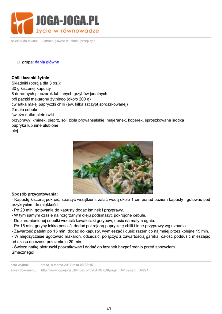 grupa: dania główne Chilli łazanki żytnie Składniki - Joga