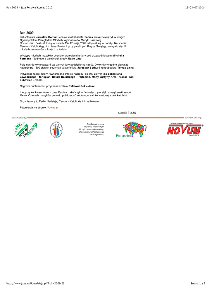 Rok 2009 - Jazz Festiwal Łomża 2010