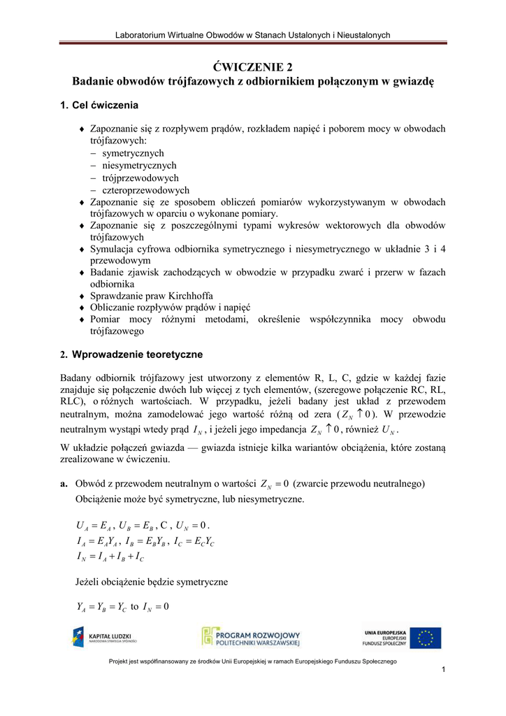 ĆWICZENIE 2 Badanie obwodów trójfazowych z
