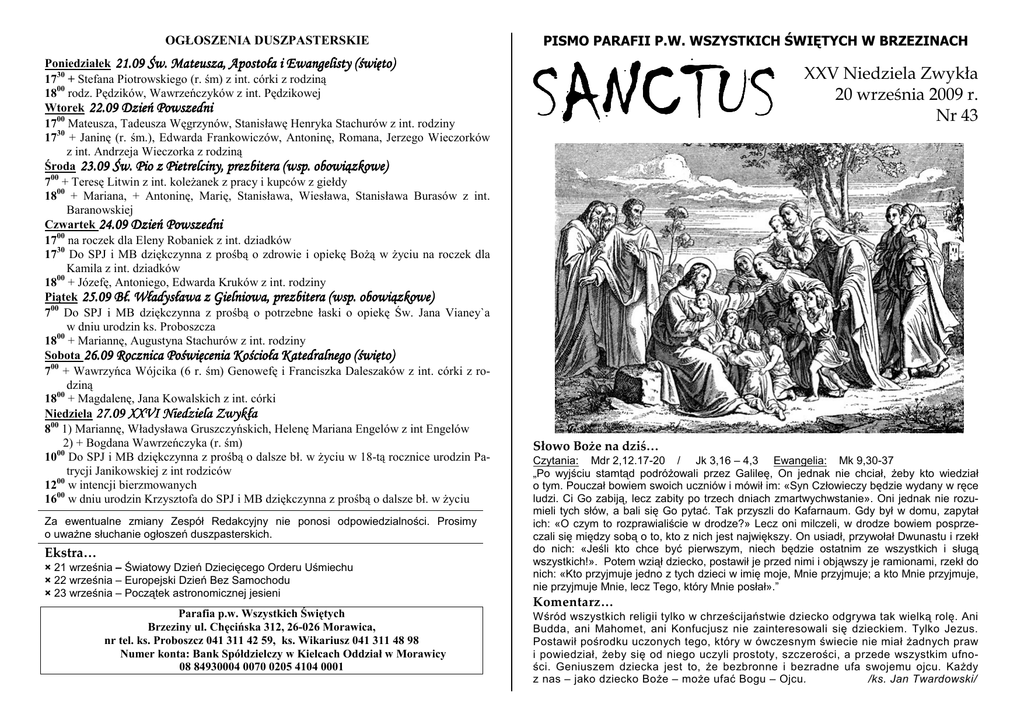 SANCTUS XXV Niedziela Zwykła 20 września 2009 r. Nr 43