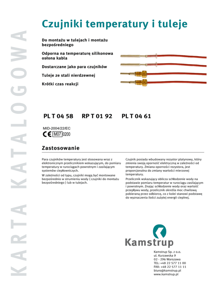 Czujniki temperatury i tuleje / Karta Katalogowa