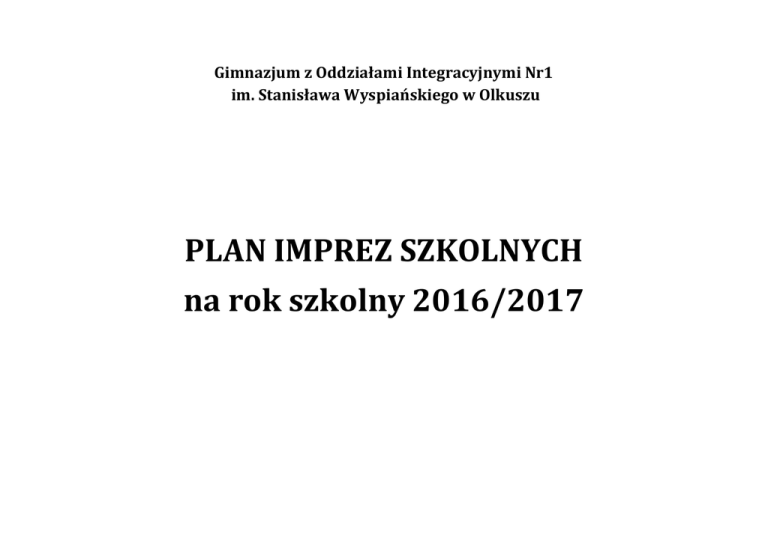 PLAN IMPREZ SZKOLNYCH na rok szkolny 2016/2017