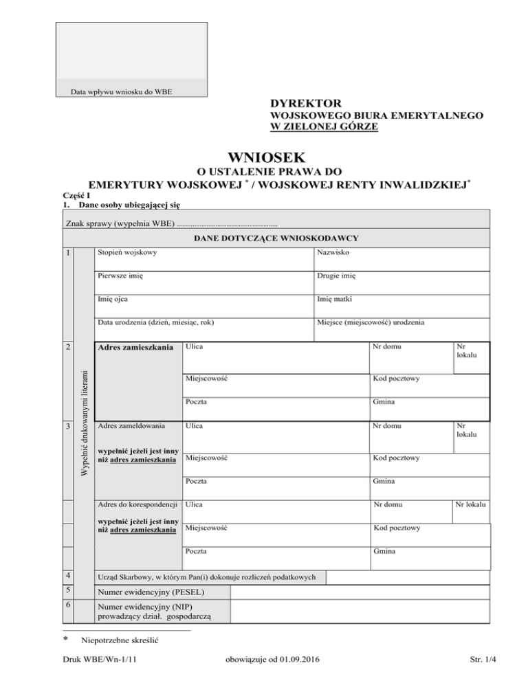 wniosek - Wojskowe Biuro Emerytalne w Zielonej Górze