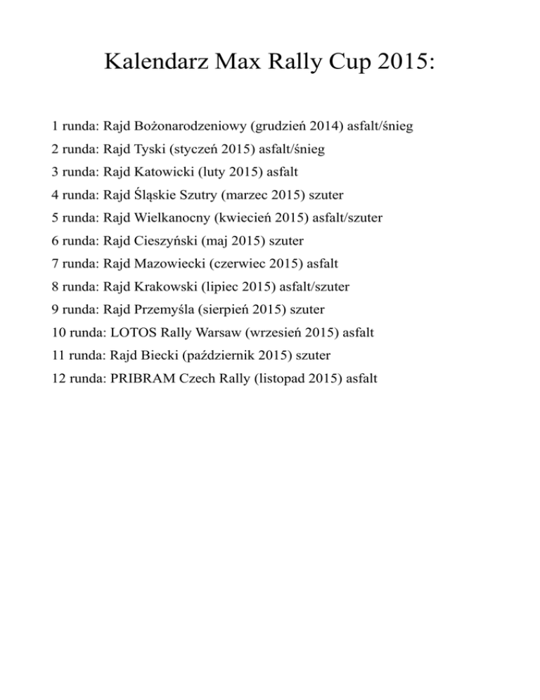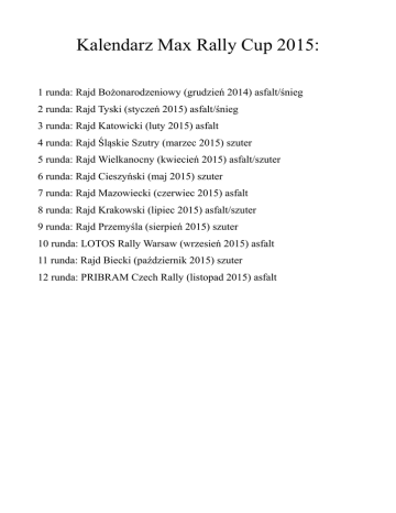 Kalendarz MRC 2015 - Max Rally Cup 2015