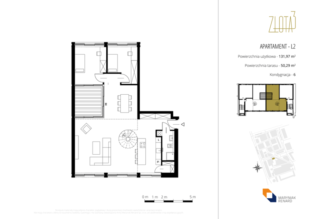 APARTAMENT - L2 Powierzchnia użytkowa - 131,97 m2 Powierzchnia tarasu - 50,29 m2 Kondygnacja - 6 Plac a ów tańc s Pow zysk tokr Świę a wsk ałko sz Mar ta Zło N 0m 1m 2m Niniejsze materiały mają jedynie charakter poglądowy i służą prezentacji możliwości wykońżćenia i aranżacji wnętrz. Nie mają charakteru oferty w rozumieniu kodeksu cywilnego i nie stanowią zobowiązania firmy Maryniak Renard Sp. z o.o. ani podmiotów z nią współpracujących. 5m APARTAMENT - L2 Powierzchnia użytkowa - 131,97 m2 Powierzchnia tarasu - 50,29 m2 Kondygnacja - 7 Plac a ów tańc s Pow zysk tokr Świę a wsk ałko sz Mar ta Zło N 0m 1m 2m Niniejsze materiały mają jedynie charakter poglądowy i służą prezentacji możliwości wykońżćenia i aranżacji wnętrz. Nie mają charakteru oferty w rozumieniu kodeksu cywilnego i nie stanowią zobowiązania firmy Maryniak Renard Sp. z o.o. ani podmiotów z nią współpracujących. 5m