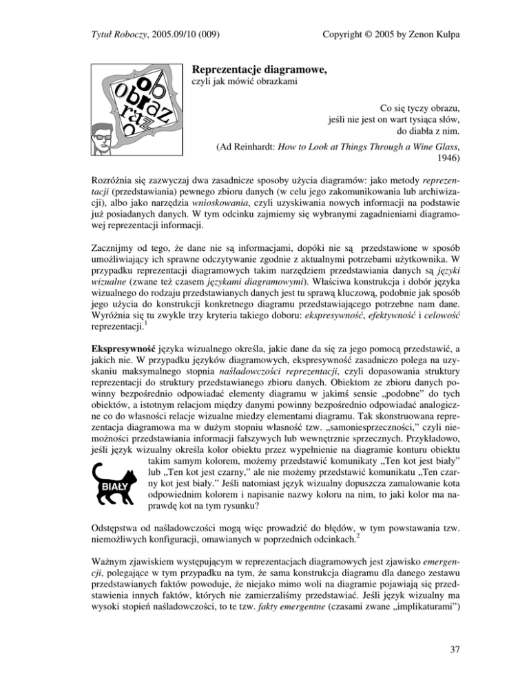 Wa nym zjawiskiem wyst puj cym w reprezentacjach diagramowych jest zjawisko emergencji, polegaj ce w tym przypadku na tym, e sama konstrukcja diagramu dla danego zestawu