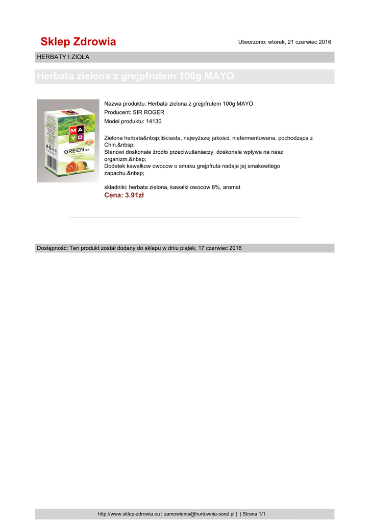 Herbata zielona z grejpfrutem 100g MAYO - sklep