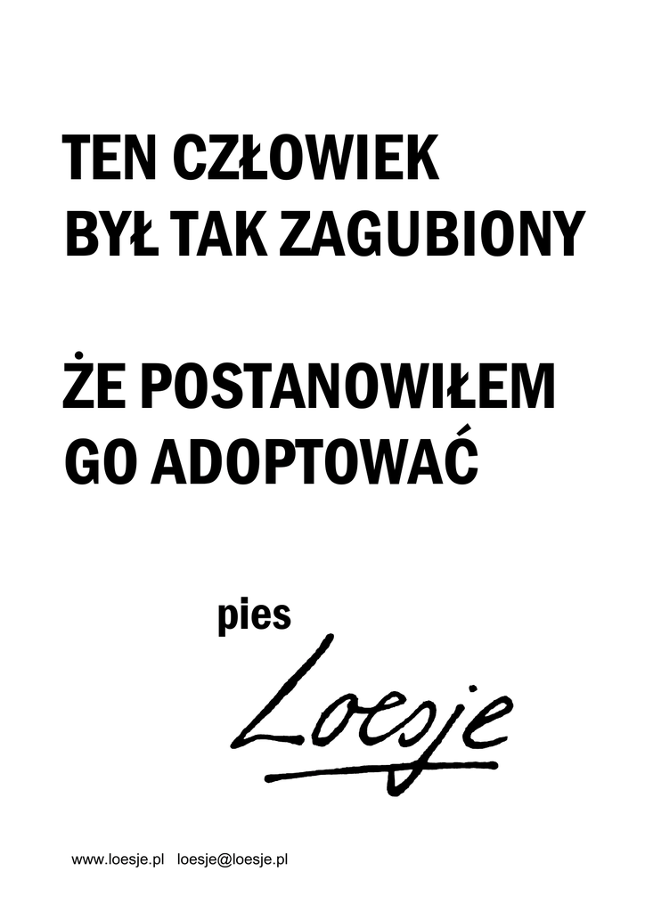 TEN CZŁOWIEK BYŁ TAK ZAGUBIONY ŻE POSTANOWIŁEM GO ADOPTOWAĆ pies www.loesje.pl [email protected]