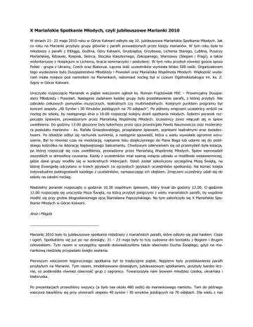 X Mariańskie Spotkanie Młodych, czyli jubileuszowe Marianki 2010